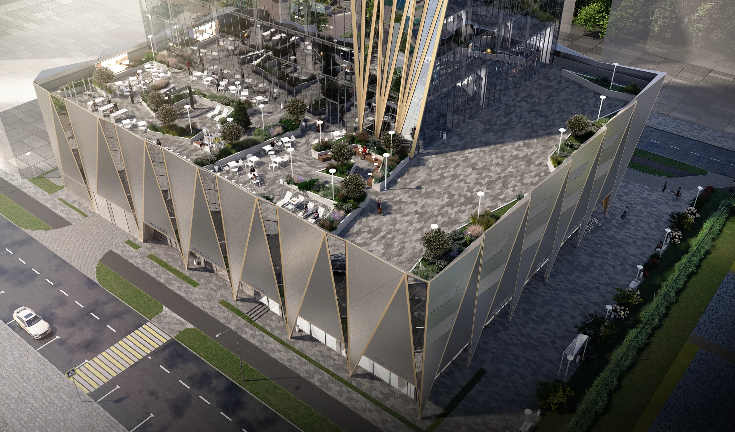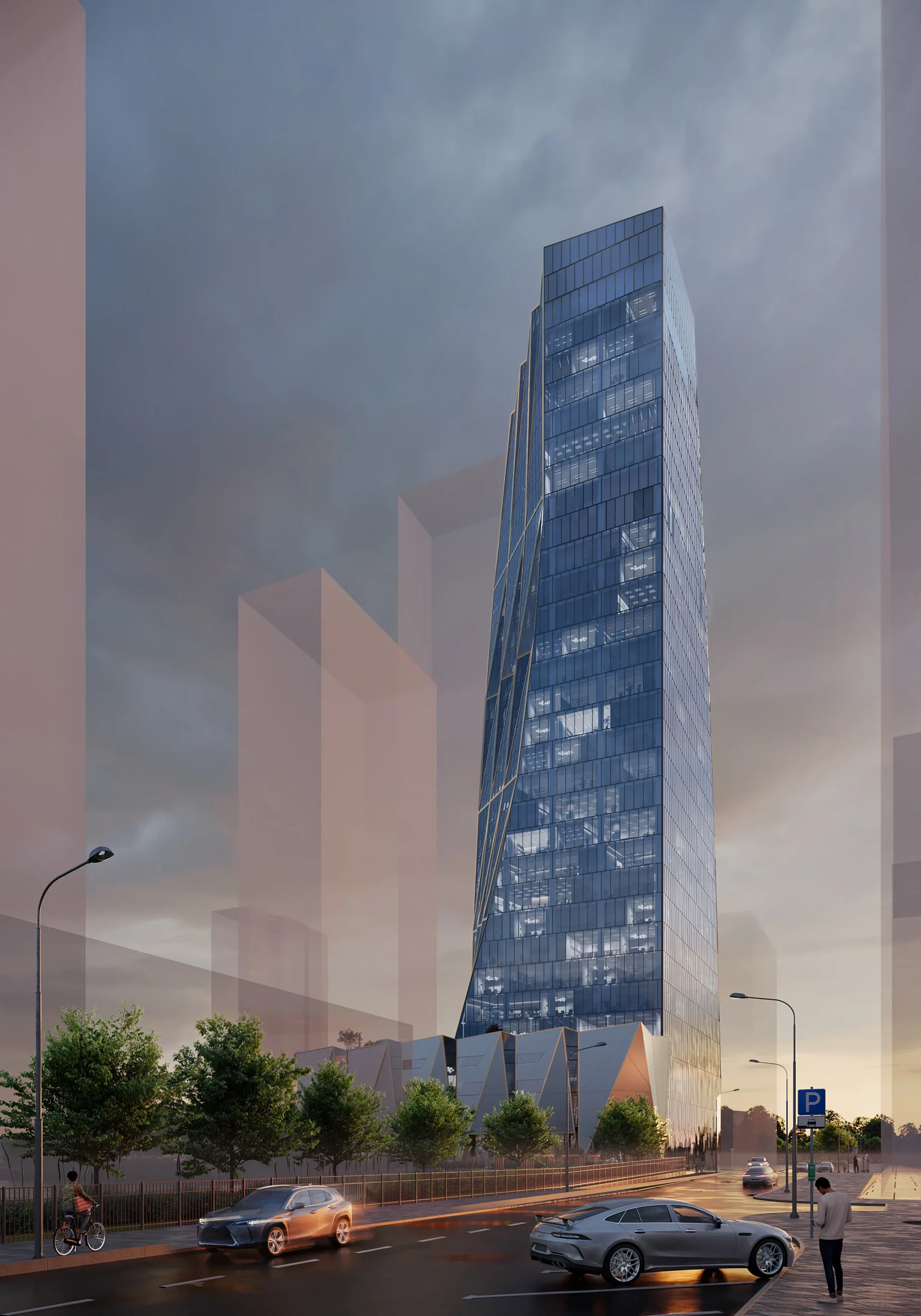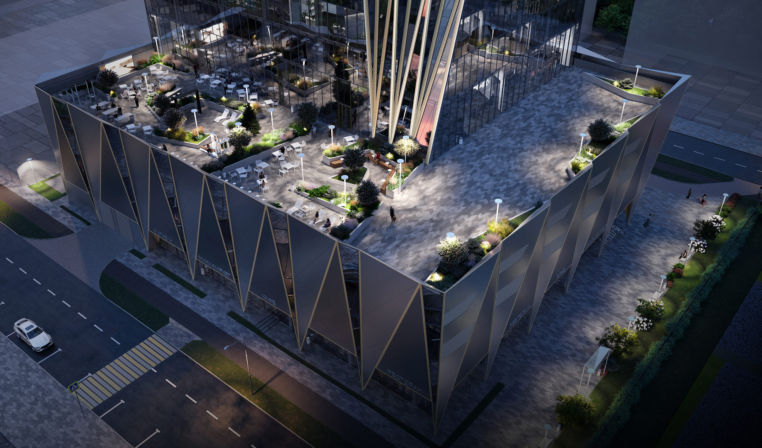 Его форма в виде башни с устремленным в небо стеклянным “пером” на фасаде, обрамленная в стекло и металл, создает голографический эффект и бизнес-центр будет выглядеть по-разному со всех ракурсов. Общественная терраса на крыше стилобата станет “сердцем” здания и отражением принципа человекоцентричности, где больше нет скученности и тесноты, а суета офиса уступает место размеренному ритму активной деловой жизни в условиях, где можно выбрать удобное место для работы, переговоров или отдыха.