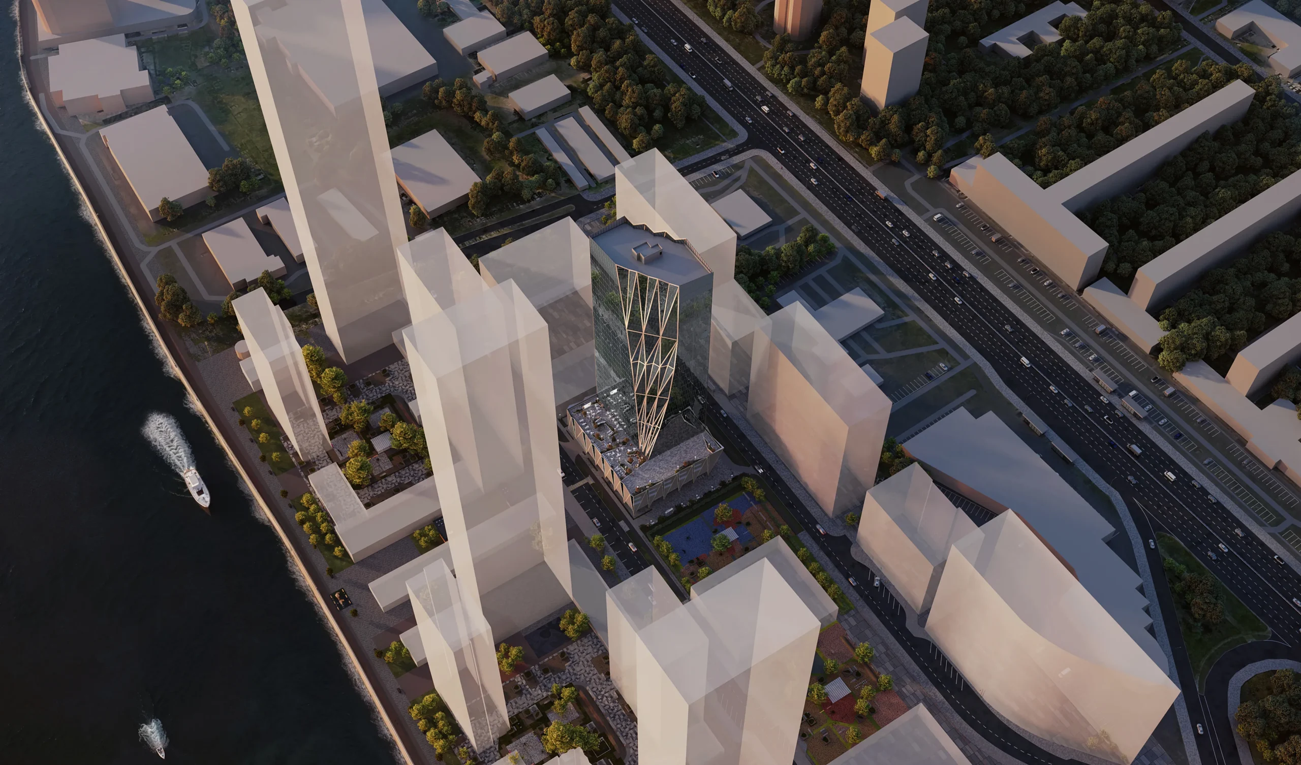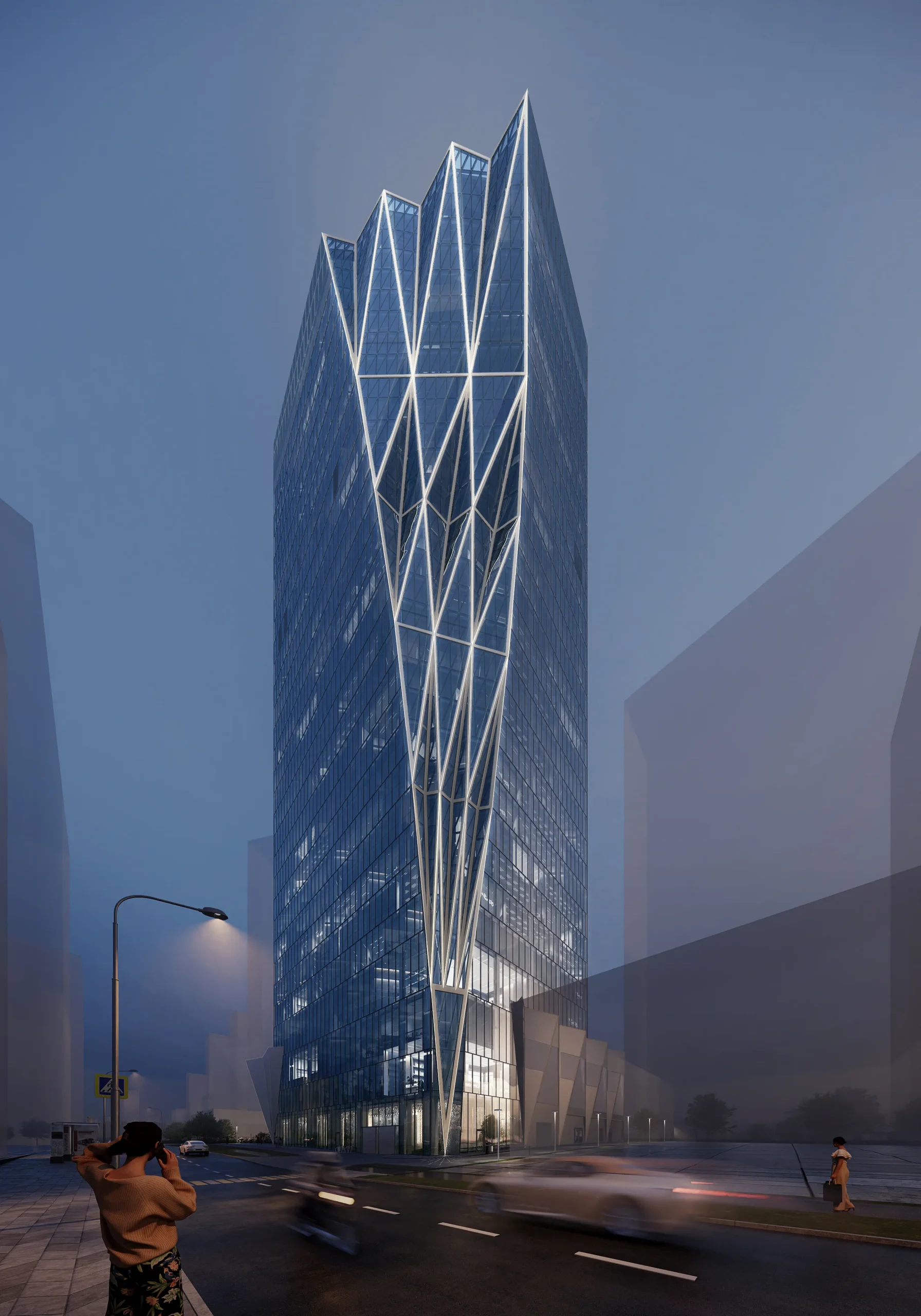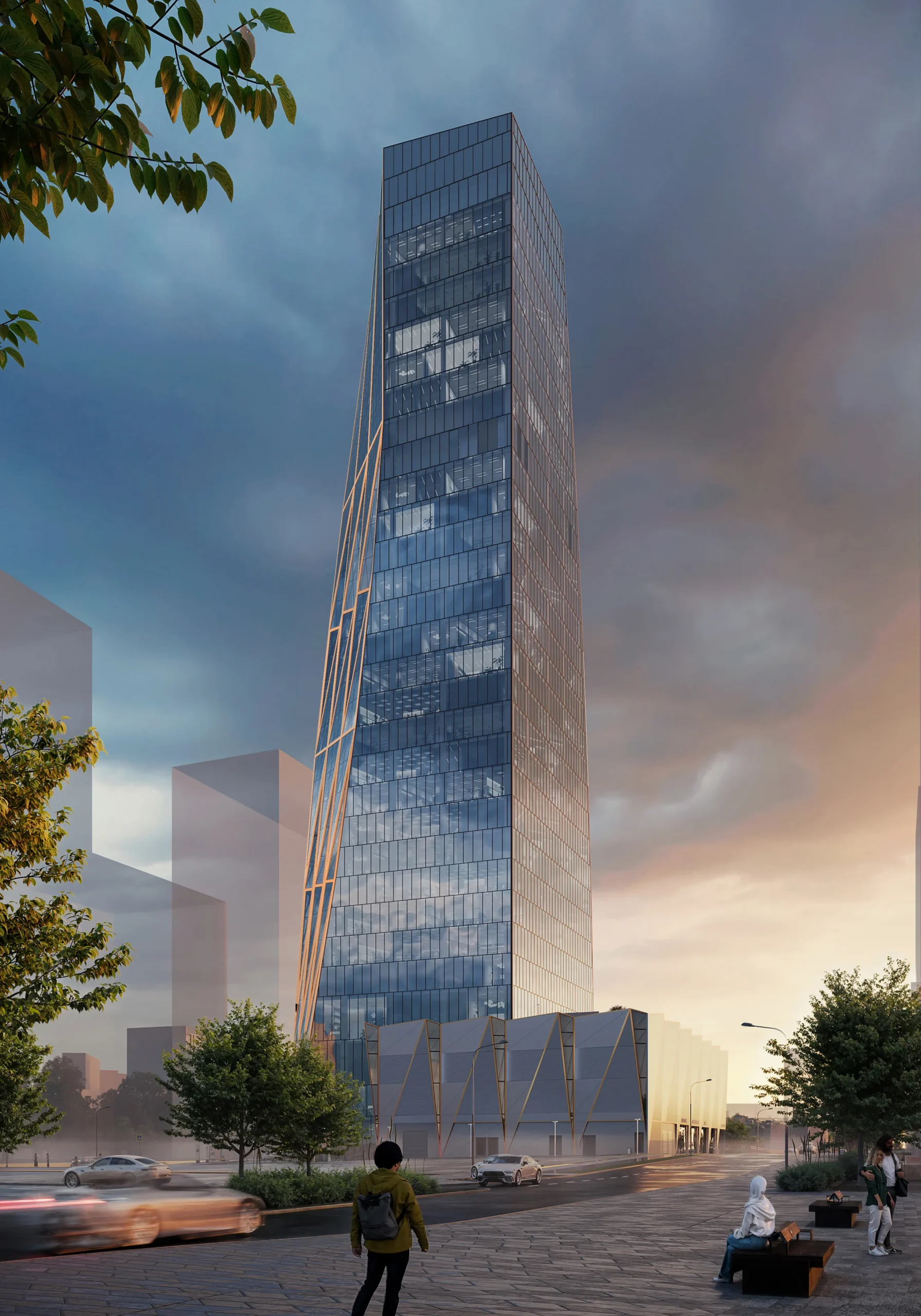 Его форма в виде башни с устремленным в небо стеклянным “пером” на фасаде, обрамленная в стекло и металл, создает голографический эффект и бизнес-центр будет выглядеть по-разному со всех ракурсов. Общественная терраса на крыше стилобата станет “сердцем” здания и отражением принципа человекоцентричности, где больше нет скученности и тесноты, а суета офиса уступает место размеренному ритму активной деловой жизни в условиях, где можно выбрать удобное место для работы, переговоров или отдыха.
